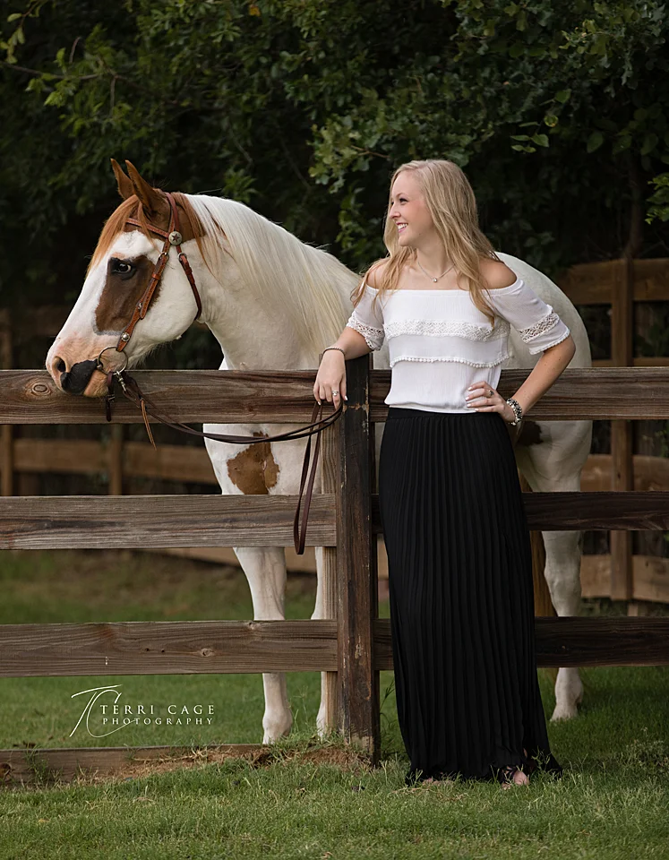 I did Emily's family portraits several years ago and was honored that they had me bad to photograph her senior pictures. I loved all the outfits that she had chosen for her session and Sheila with Horse Show Makeup Artist did her hair and makeup. Emily agreed to do a early morning session and the light was fantastic. Much of the session was done at their neighbors by beautiful stock tank and in their backyard by a wonderful natural looking pool. We then returned to her home do do some of her senior photos with her horse, Vinny. Vinny is an Appaloosa that has tons personality. Vinny is fairly new to Emily and they plan on showing soon.